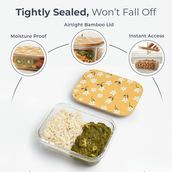 - Product Contents: 1 × Glass Food Container, 1 × Bamboo Airtight Lid with Silicone Gasket