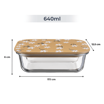 Premium Airtight Borosilicate Glass Food Container with Bamboo Lid(640ml)
