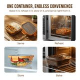 Crafted from premium borosilicate glass, the container resists thermal shock up to 140°C and withstands extreme temperature changes. It is safe for freezer storage, direct microwave heating, and oven use without cracking, warping, or absorbing food stains.