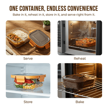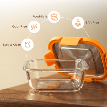 Both the glass body and SS304 stainless steel lid with silicone gasket are completely BPA-free, lead-free, and food-grade certified. The non-porous glass does not retain odors, flavors, or stains, keeping your food pure and hygienic.
