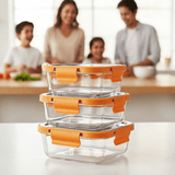 Store, heat, and serve your food with confidence using this Glass Food Container with 4-Lock Stainless Steel Lid. Made from high borosilicate glass, it safely withstands microwave, oven, freezer, and dishwasher use. The food-grade SS304 steel lid with silicone gasket creates a secure, airtight, and leak-proof seal, keeping meals fresh for longer. Stylish, durable, and eco-friendly, it’s perfect for meal prep, leftovers, and everyday kitchen storage.