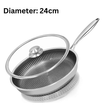 Elevate your cooking with the Premium Non-Stick Honeycomb Pan (24 cm). Crafted from high-quality stainless steel, this Non-Stick Pan features a unique honeycomb surface that ensures even heat distribution and reduces oil usage. Its ergonomic, heat-insulated handle provides a comfortable grip, making it ideal for frying, sautéing, and simmering. The included lid helps retain moisture and flavors, making it a versatile addition to your kitchen.