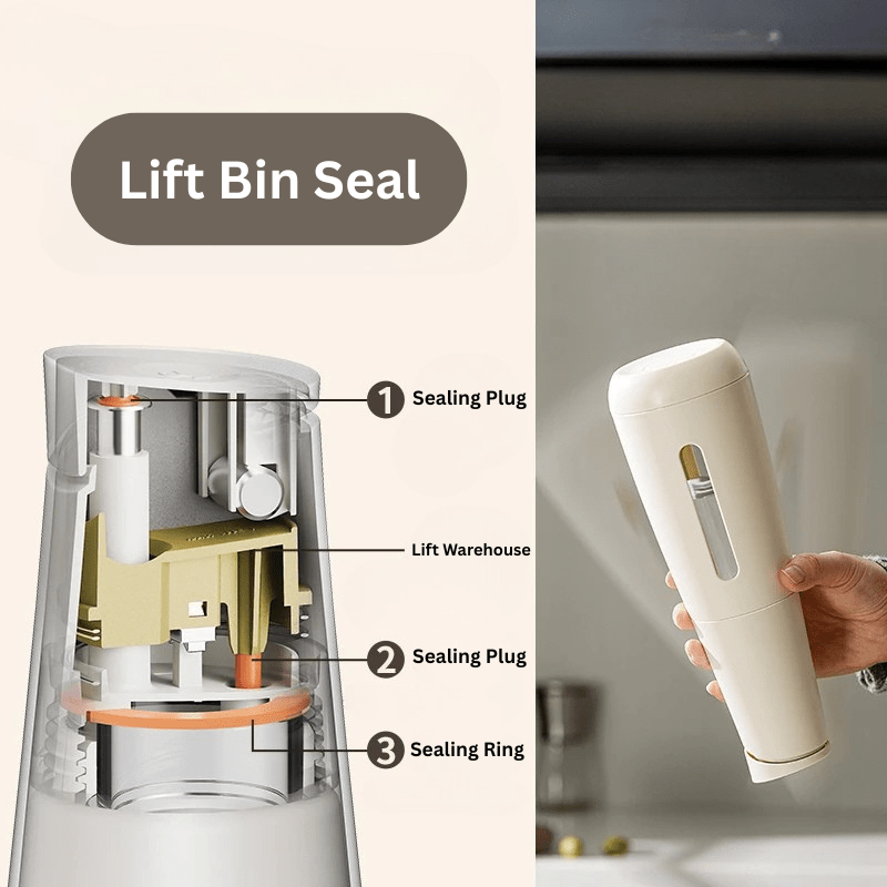 - Secure Lift-Bin Seal - Patented sealing mechanism creates an airtight lock that prevents evaporation and maintains flavor integrity.