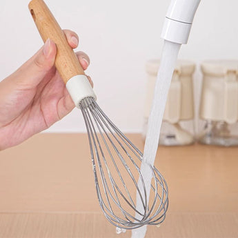 - Set of 2 Contains - 2 x Wooden handle whisk, 2 x Wooden handle filter, 2 x Wooden handle cheese shaving