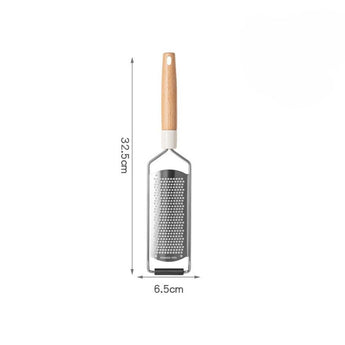 Upgrade your kitchen with this premium stainless steel grater featuring a durable beech wood handle. Designed for versatility, it finely grates cheese, lemon zest, chocolate, vegetables, and more with ease. The sharp etched blade ensures smooth, consistent results while the non-slip support frame keeps it steady during use. Lightweight yet sturdy, it comes with a protective cover for safe storage and hygiene. Perfect for home cooks and bakers, this grater combines durability, comfort, and efficiency in one essential tool.