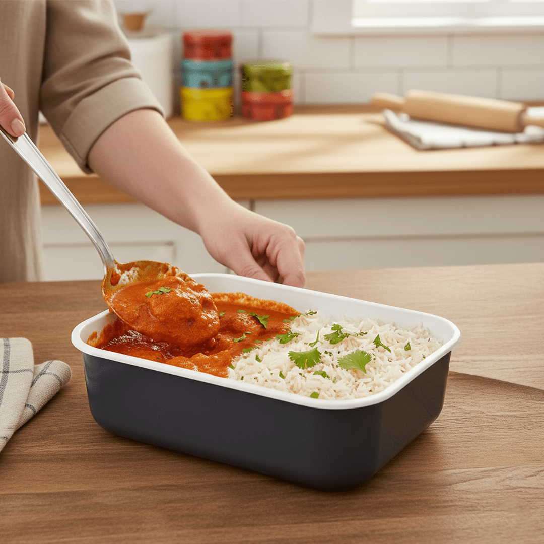 The smooth non-stick coating prevents food from sticking, making it easy to clean after use. Ideal for sticky meals, oily foods, or baked dishes, this coating enhances user convenience and keeps the container looking new for longer.