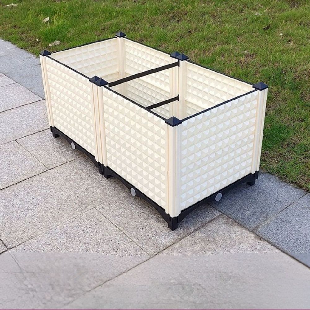 This raised planting box provides ample growing space for vegetables, herbs, or flowers, making it perfect for rooftops, patios, balconies, or gardens. Its rectangular structure allows maximum planting area in compact spaces.