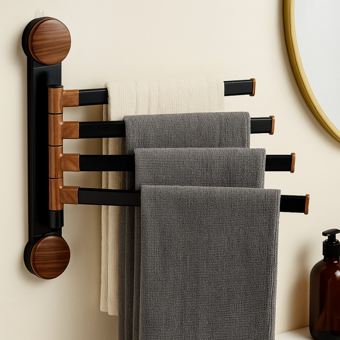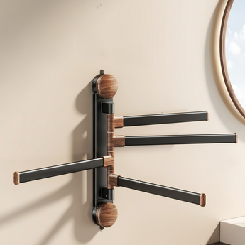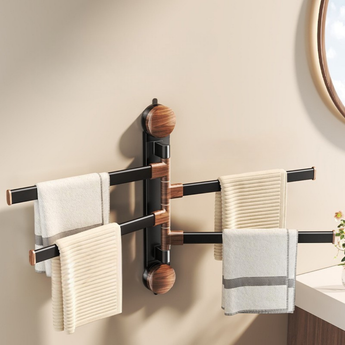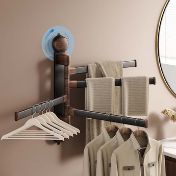 The Rotating Pole Wall-Mounted Suction Cup Towel Holder is a space-saving solution designed to keep your bathroom or balcony neat and organized. Featuring multiple rotating bars, it allows you to hang towels, clothes, or other items separately for quick drying and easy access. The strong suction cup installation requires no drilling, ensuring a secure hold without damaging walls. Its sleek design makes it both practical and stylish, perfect for modern homes.