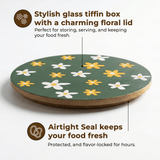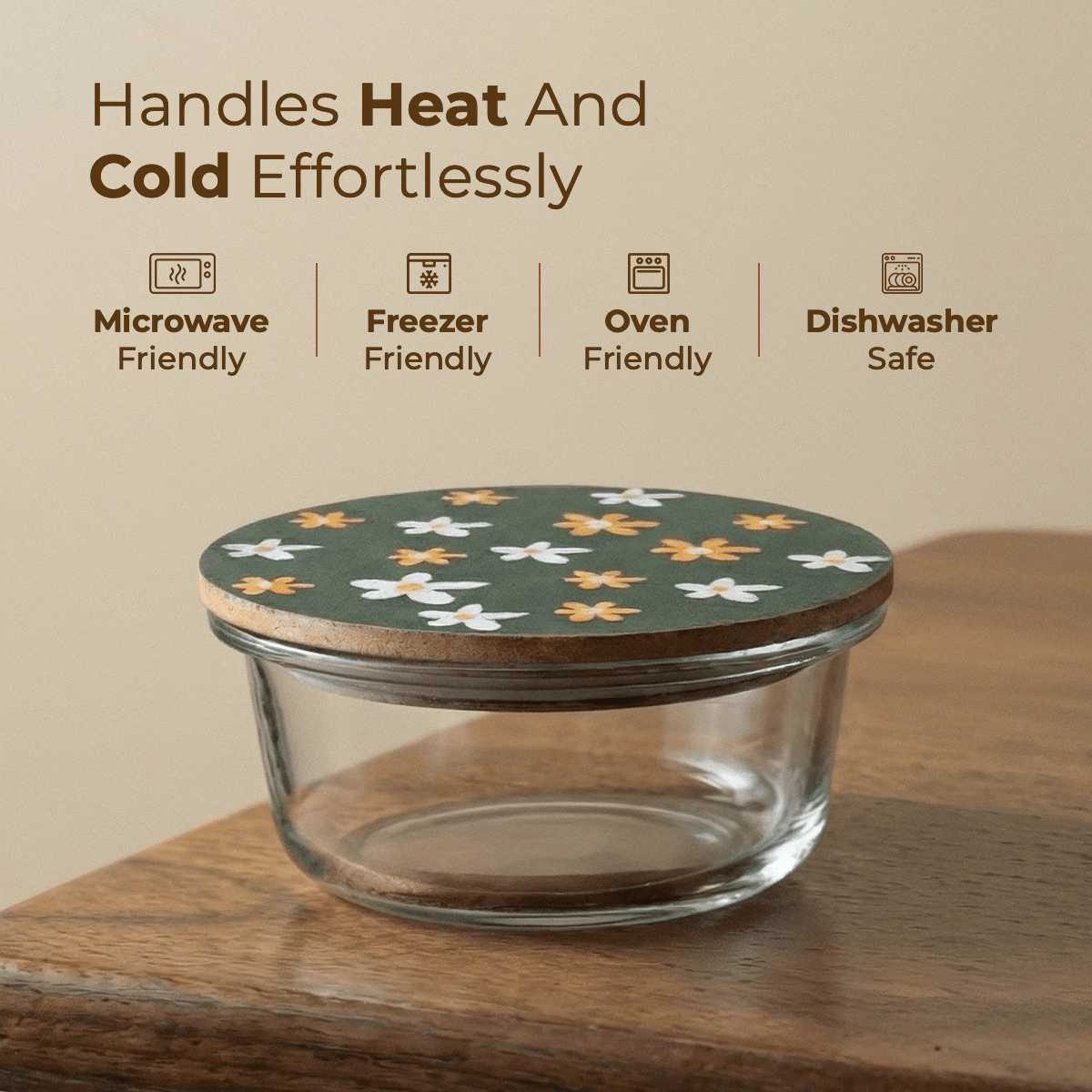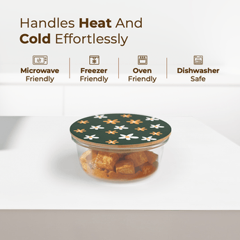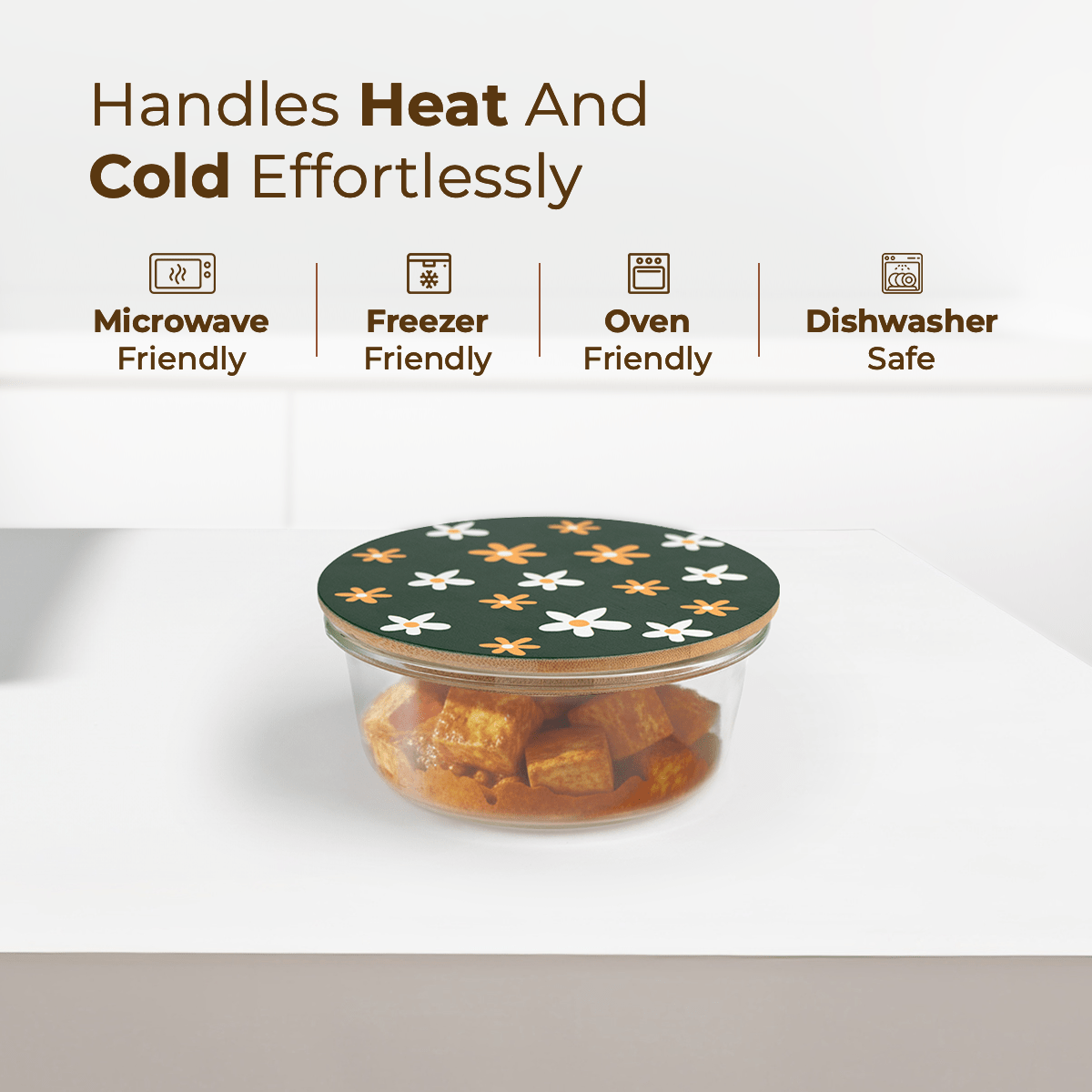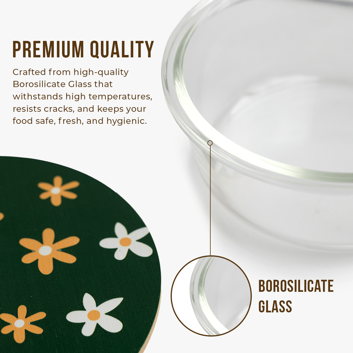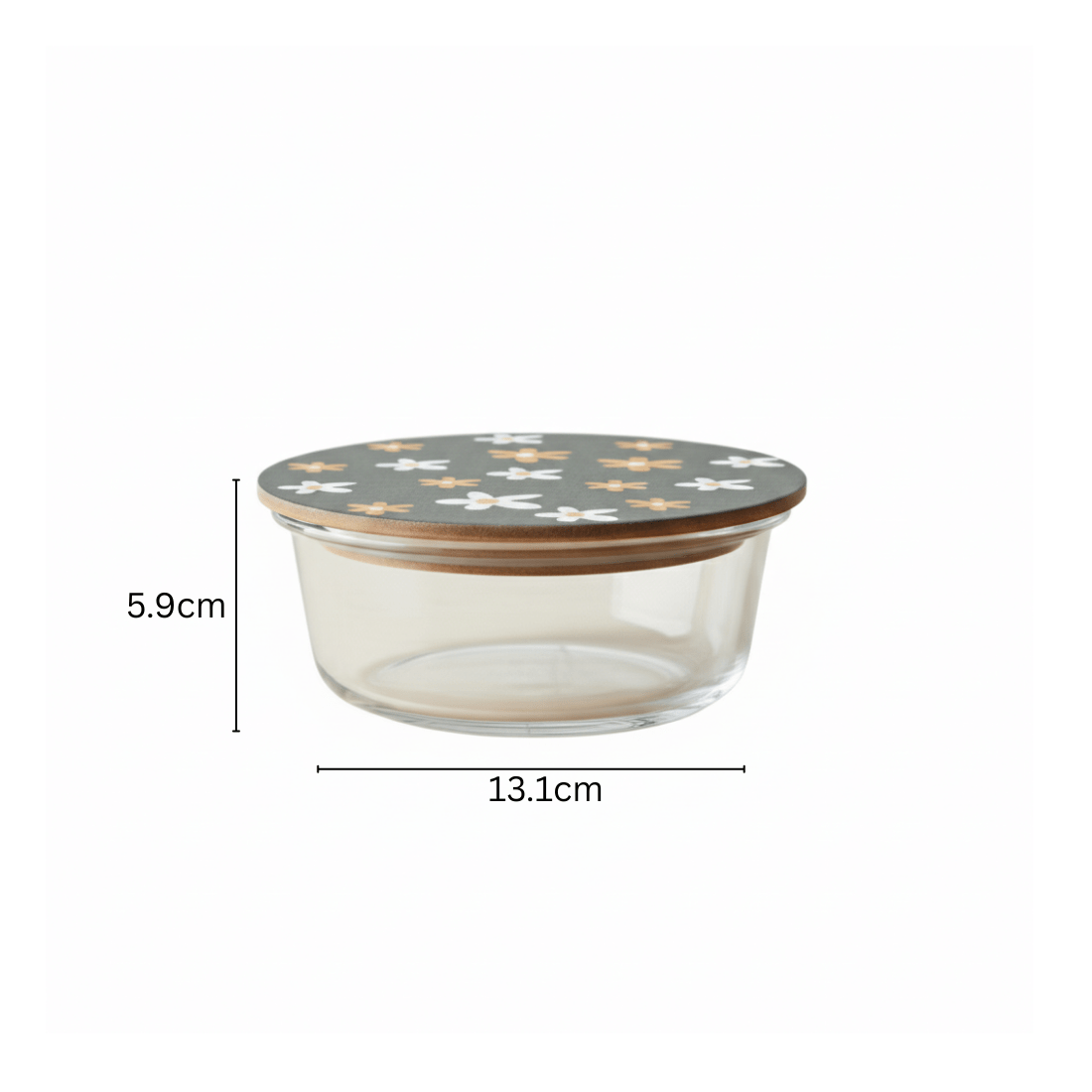 - Product Includes: 1 x Round Borosilicate Glass Food Container with Printed Lid