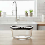Round Vacuum Glass Storage Container with Date Tracker Lid(850ml)