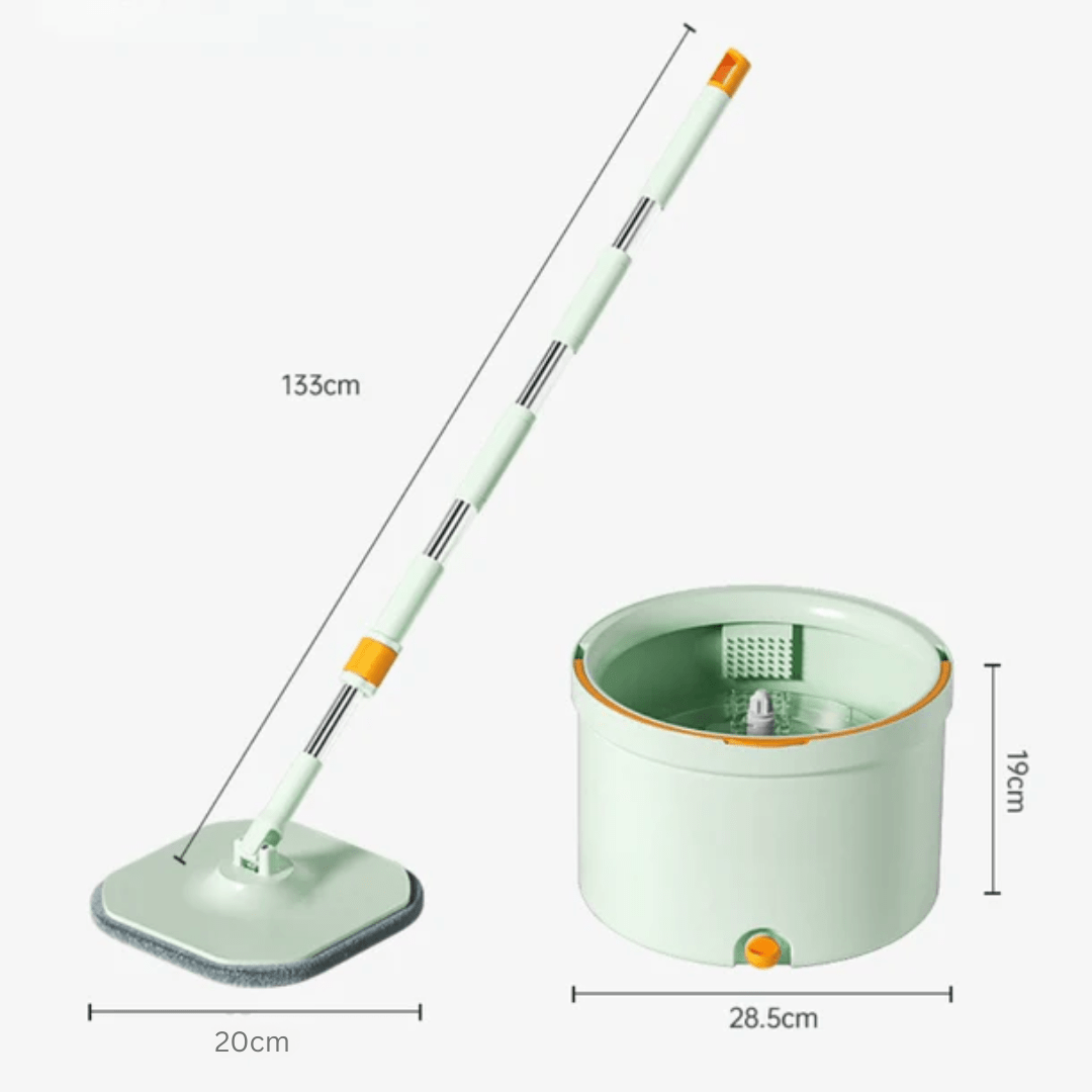 The built-in scraping teeth remove dirt and hair from the mop with every rinse, while the high-speed centrifugal drying mechanism eliminates excess water effortlessly. This allows for a quick, mess-free mopping experience without touching dirty water or squeezing the mop by hand.
