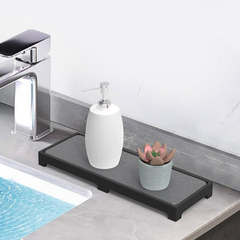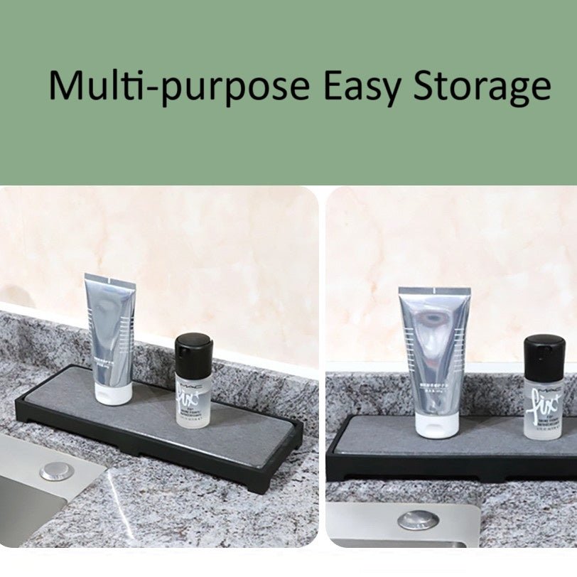 Keep your counters clean and dry with the Snap Dry Multi-Use Drying Tray. Designed with fast-absorbing diatom mud and a water-collecting silicone base, this tray dries in seconds and prevents water buildup. Its sleek, detachable design makes it perfect for kitchen sinks, vanities, and dressing tables. Non-slip and mold-resistant, it provides a hygienic and stylish solution for organizing sponges, brushes, and more—without any drilling or mess. Built for modern living, it’s both functional and elegantly designed.