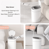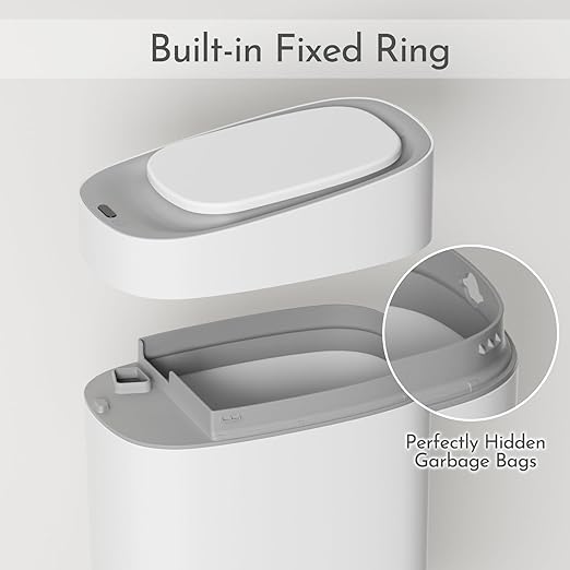 Designed for tight spaces, this sleek sensor-activated trash can combines intelligent technology with a ultra-narrow profile. The IPX5 waterproof construction withstands humid bathroom environments while the innovative external bag ring ensures perfect liner placement every time. The 0.3s quick-response lid opens with a simple hand wave and automatically seals odors after 5 seconds.