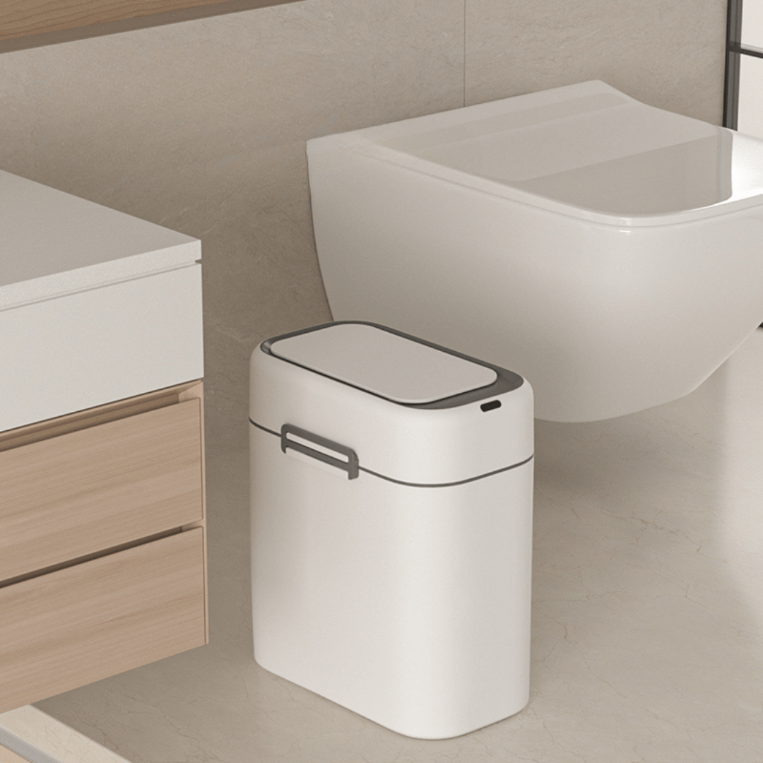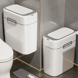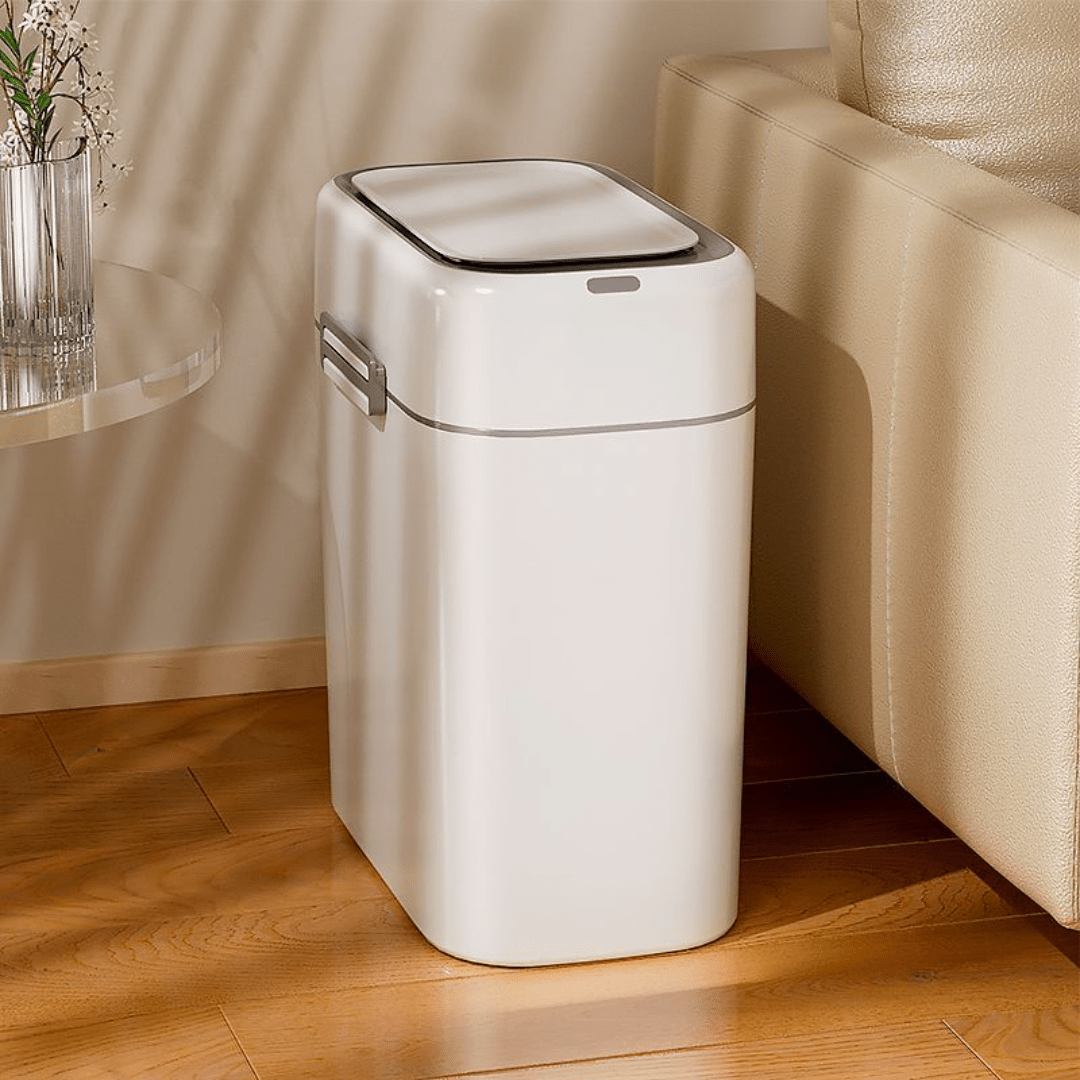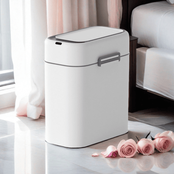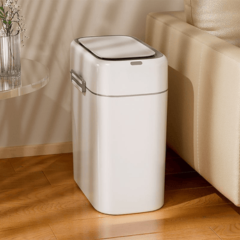 This smart induction trash can offers a touchless experience with hand wave and knee-sensing technology for a more hygienic lifestyle. Its narrow, wall-mounted design saves space, making it ideal for tight areas like bathrooms, kitchens, or small apartments. Features whisper-quiet lid operation and secure snap-on design.