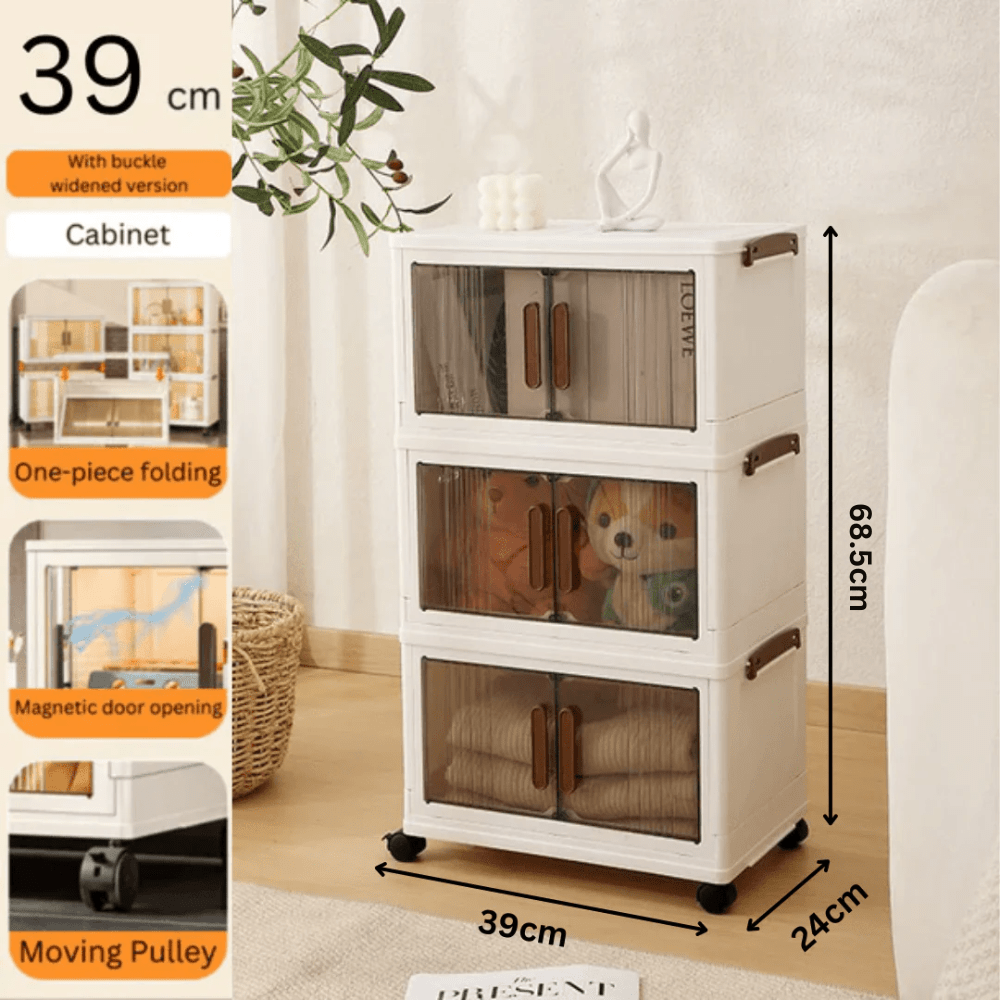 Handle with Care While Folding: When folding or unfolding the cabinet, operate gently to avoid bending the panels or misaligning the magnetic doors and buckles.