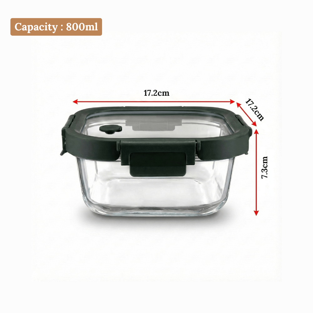Square Borosilicate Glass Container with Vented Glass Lid (800ml)
