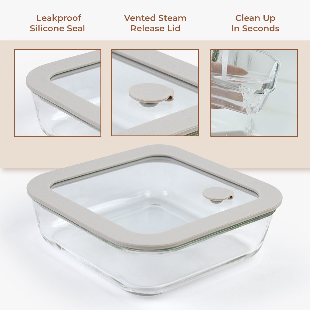 - Product Includes: 1 x Square Borosilicate Glass Food Container with Vented Lid