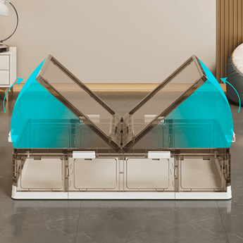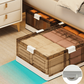 Organize your space effortlessly with our foldable plastic under-bed storage box. Designed for seasonal clothes, sundries, and more, it features wheels for easy movement, dual opening lids for convenient access, and a space-saving flat design that folds when not in use.