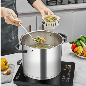 Made from high-quality 304 stainless steel, this pot is resistant to rust, corrosion, and high temperatures. It is compatible with induction cookers, gas stoves, and other heat sources.