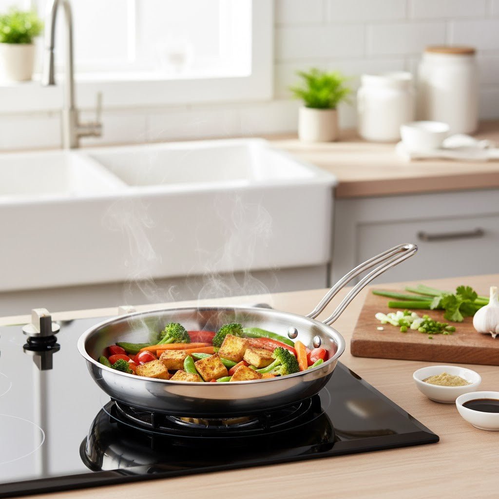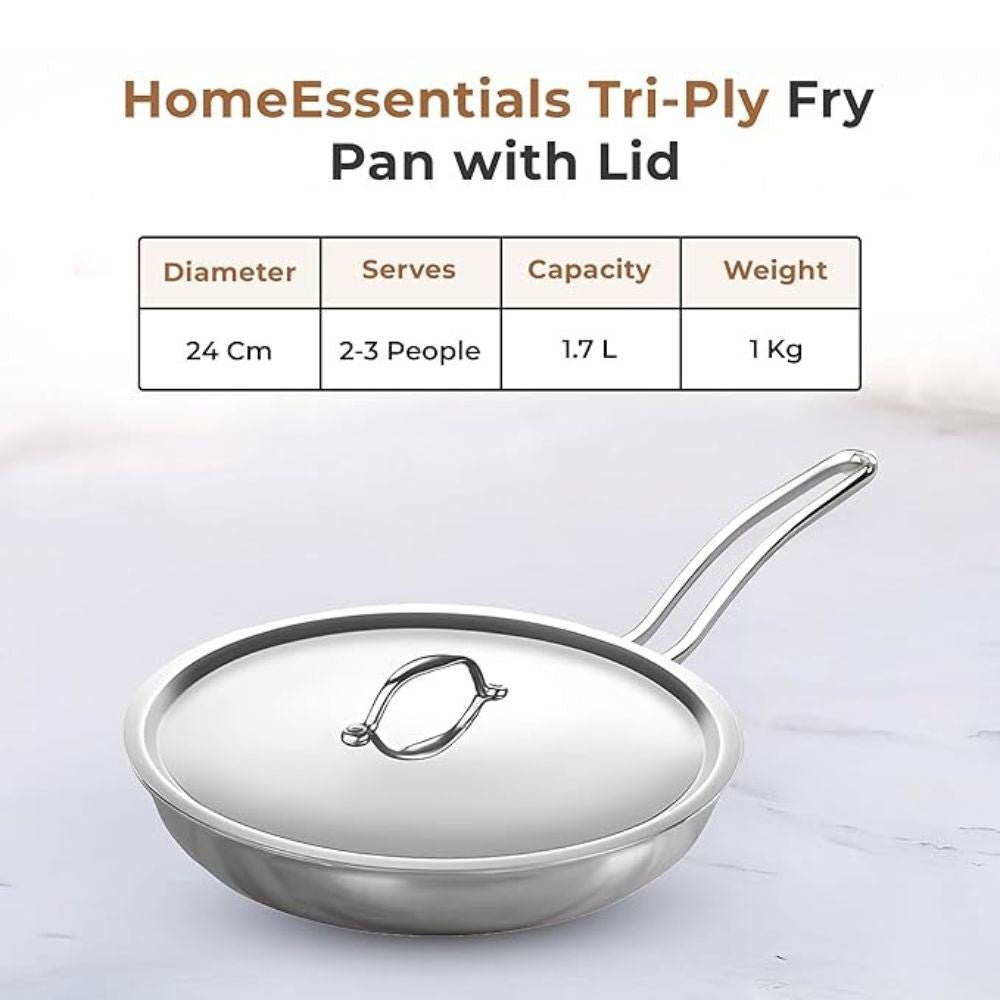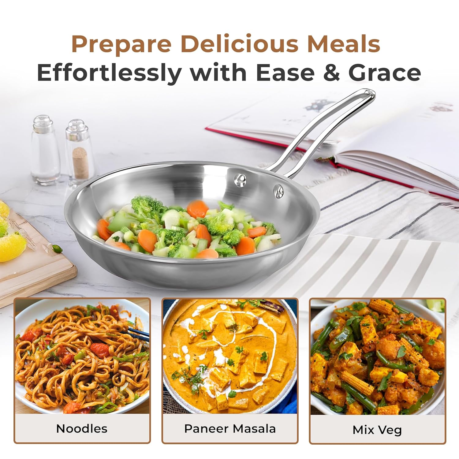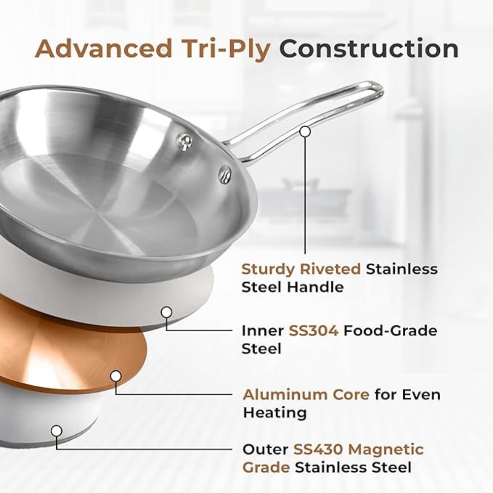 Tri-Ply Construction: The triply stainless steel fry pan features a tri-ply design, providing excellent heat distribution and reducing hot spots for even cooking.