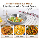 Non-Stick Coating: The stainless steel non-stick frying pan offers a non-stick surface, requiring less oil for healthier meals and ensuring easy food release and cleanup.