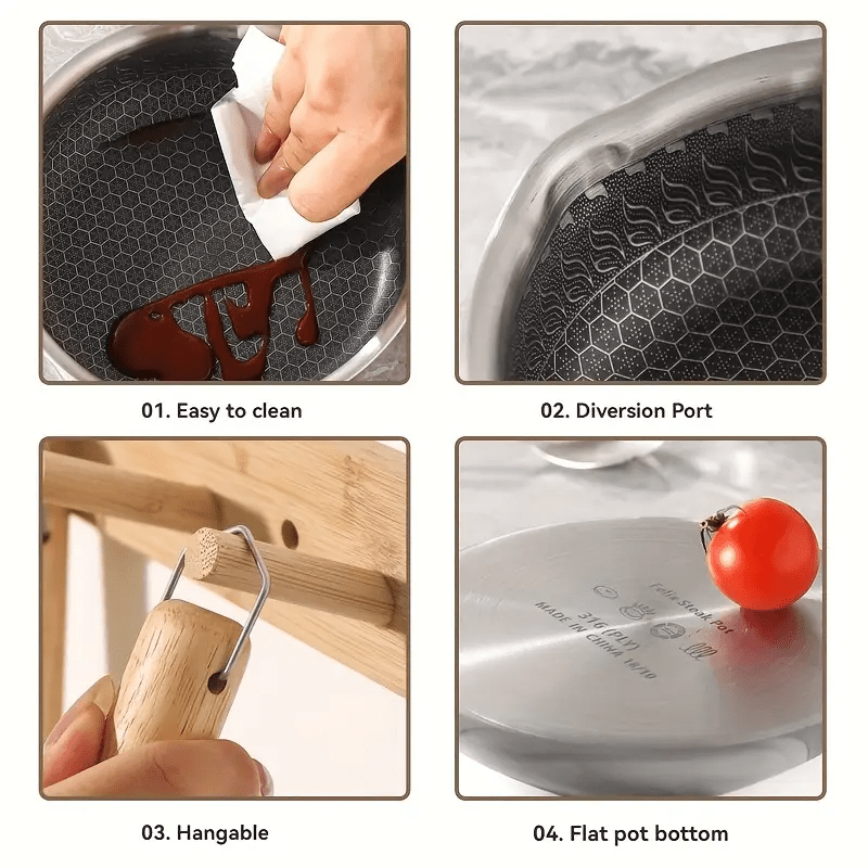 - Material: 316 Stainless Steel (Pan), Solid Wood (Handle)
