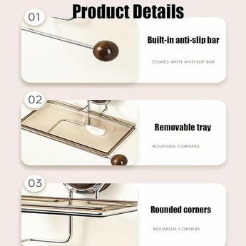 - Material: Stainless Steel Rounded Corner Body, Wooden Suction Cup & Plastic Removable Tray