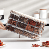 Organize your kitchen essentials with this multi-purpose transparent storage box. Designed with a narrow, long body and a large capacity, it features three layers of varying heights to accommodate different storage needs. The four-part grid design, independent compartments, and large opening ensure easy access and orderly storage. Equipped with anti-tilt buckles and a smooth, easy-to-clean surface, this durable box offers both functionality and elegance, making it perfect for a variety of kitchen items.