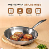 Tri-Ply Stainless Steel Construction: The stainless steel frying pan with lid features a tri-ply construction, ensuring superior heat retention and even cooking.