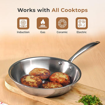 Versatile Tri-Ply Stainless Steel Fry Pan With Lid(24cm)