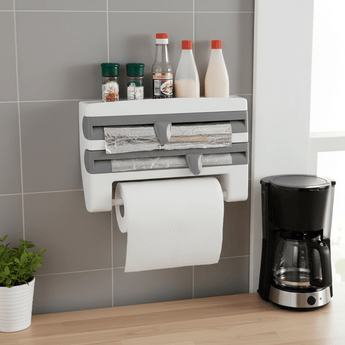 Versatile Storage Solution: This multifunctional rack stores various kitchen essentials such as plastic wrap, tin foil, oil-absorbing paper, and paper towels, keeping your kitchen organized and clutter-free. The all-in-one design makes accessing and dispensing these items effortless.